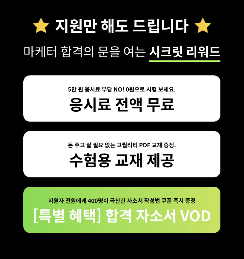 지원만 해도 드립니다. 마케터 합격의 문을 여는 시크릿 리워드