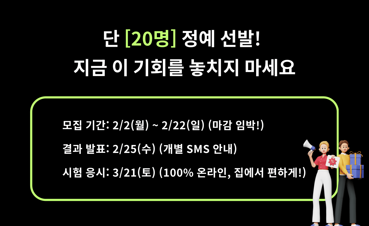 단 20명 정예 선발! 지금 이 기회를 놓치지 마세요
