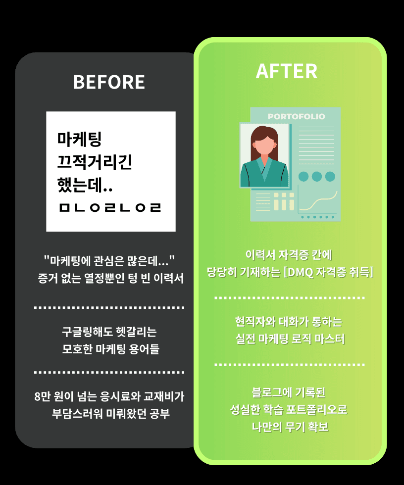- 이력서 자격증 칸에 당당히 기재하는 [DMQ 자격증 취득]