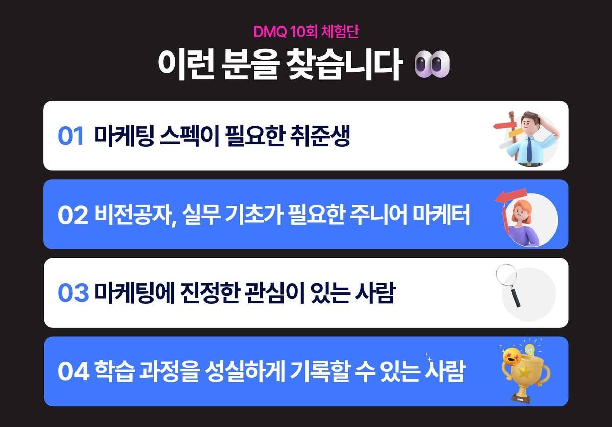 마케팅 실무 빠르게 익히는 법, DMQ 체험단에 지원한다✨