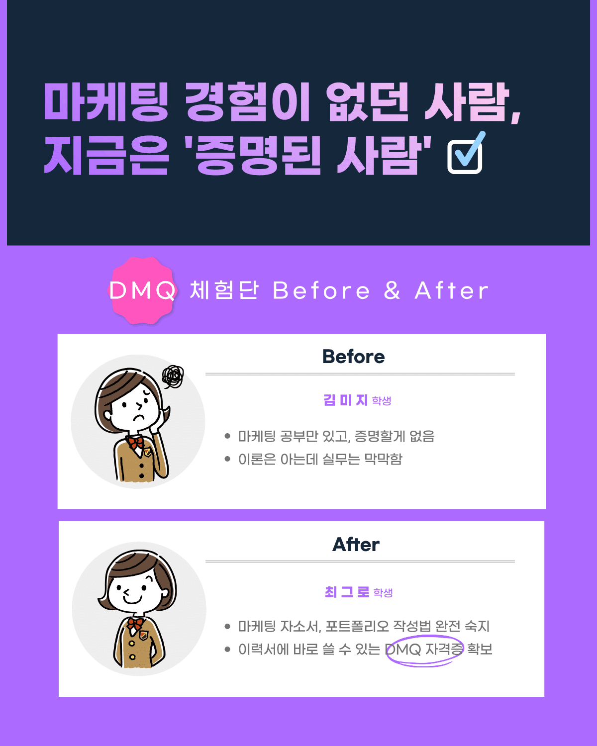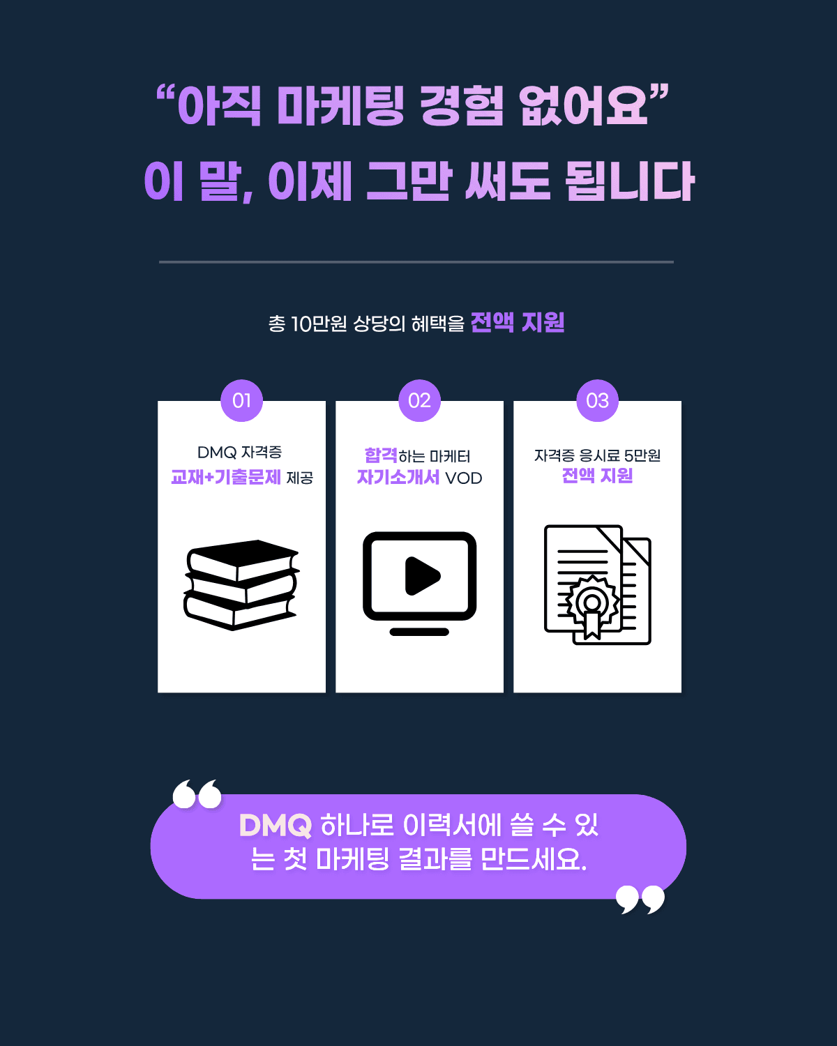 DMQ 하나로 이력서에 쓸 수 있는 첫 마케팅 결과를 만드세요.