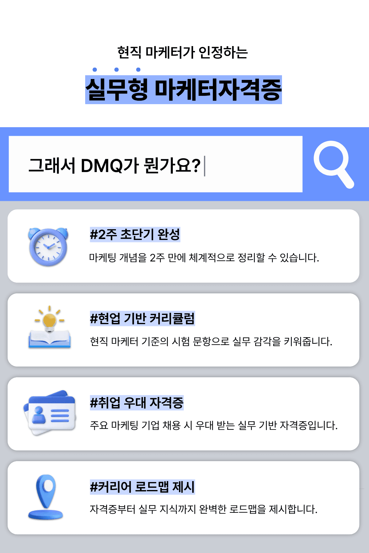 ✔️ DMQ 응시권 무료 제공 ✔️ PDF 교재 무료 제공 ✔️ 평생 이력이 되는 DMQ 자격 능력 획득