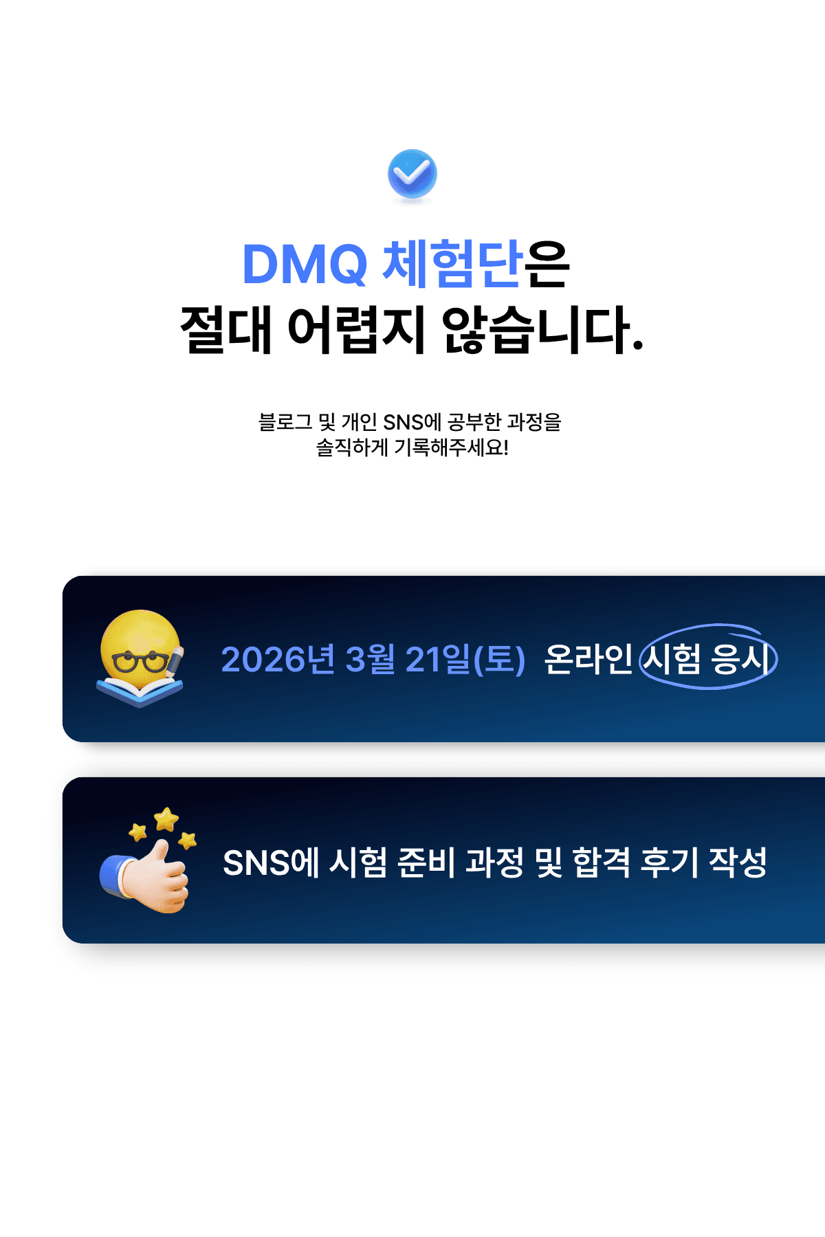 ✔️ DMQ 자격증 시험 (3/21 토요일, 온라인) 응시 가능하신 분